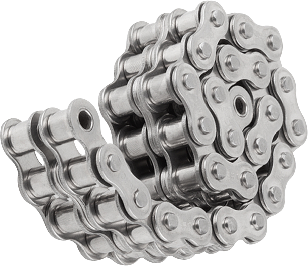 Cadenas industriales resistentes y precisas, ideales para sistemas de transmisión y transporte que requieren fiabilidad, durabilidad y un funcionamiento seguro.