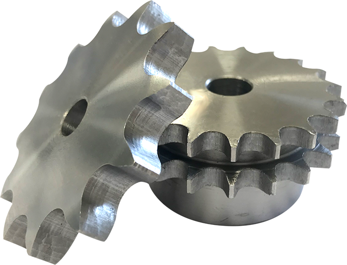 Piñones mecanizados con alta precisión, diseñados para asegurar un engrane óptimo y una transmisión de potencia eficiente en conjuntos de cadenas y sistemas mecánicos.